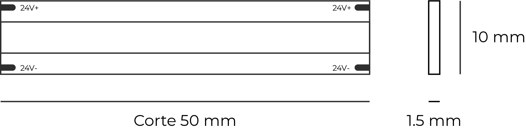 Tira de LED dimeable 14.5W/m FADA 10 MM, 24 Vcd, 3000K, ángulo 140°.