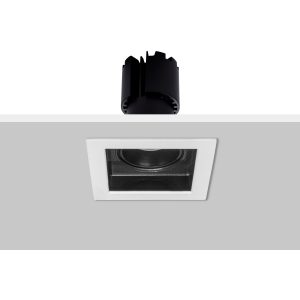 Marco cuadrado de empotrar en techo MASS, dirigible 20°, acabado blanco interior negro.