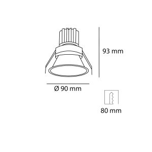 Luminario downlight de empotrar en techo TARIK orientable 30°, 7W, 100-277 Vca, 3000K, ángulo 24°, ON-OFF, acabado blanco.