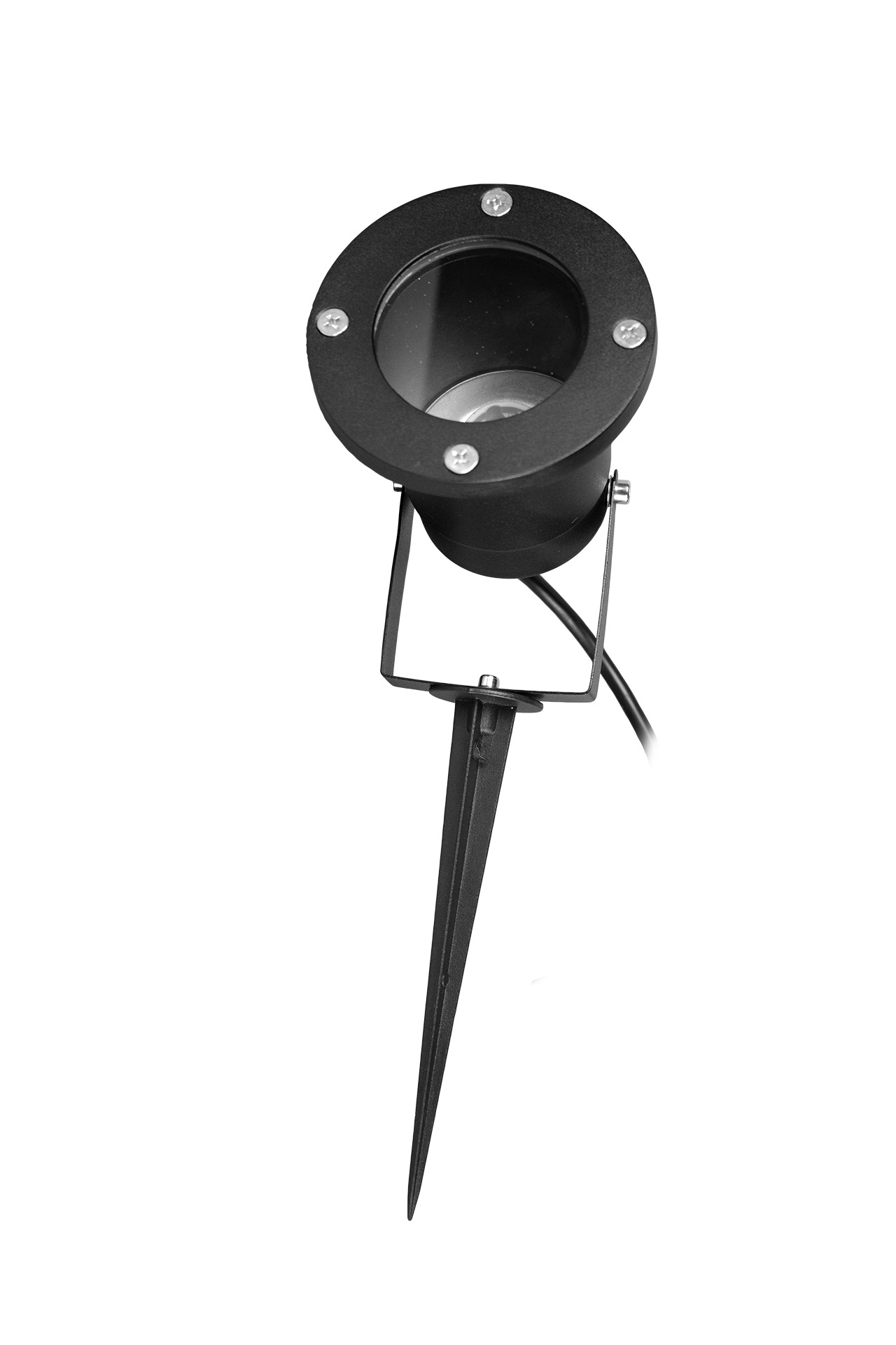 Luminario GU10 de jardín para sobreponer en piso o con estaca, modelo AES230N01, de uso exterior. Acabado en color negro.